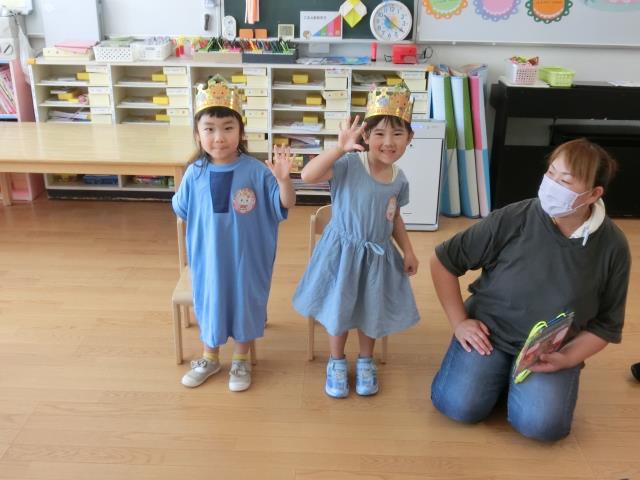 好きなお友だちと一緒に入場した後、みんなからの質問タイム、お誕生日のうた、カードのプレゼントをもらってとっても嬉しそうでした。