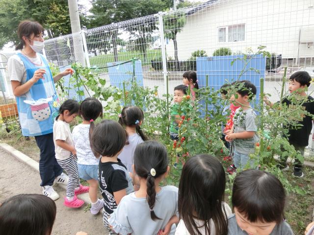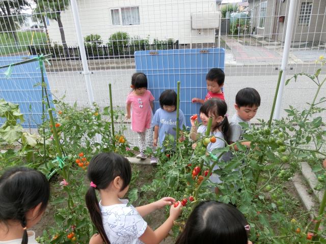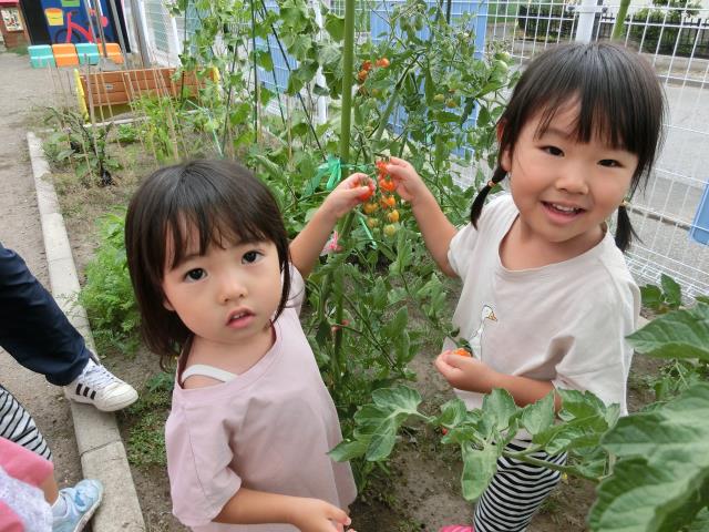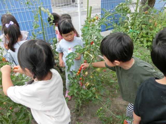 今日のちゅうりっぷぐみは、運動会練習・身体測定をした後、トマトの収穫をしています。