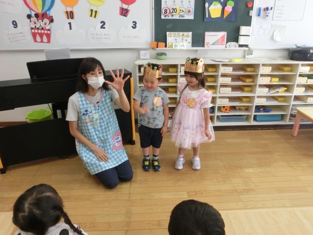今日は各クラスにて8月生まれさんのお誕生会を行なっています。