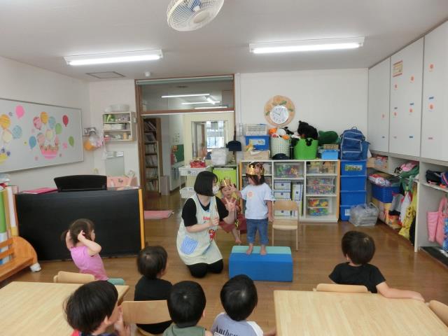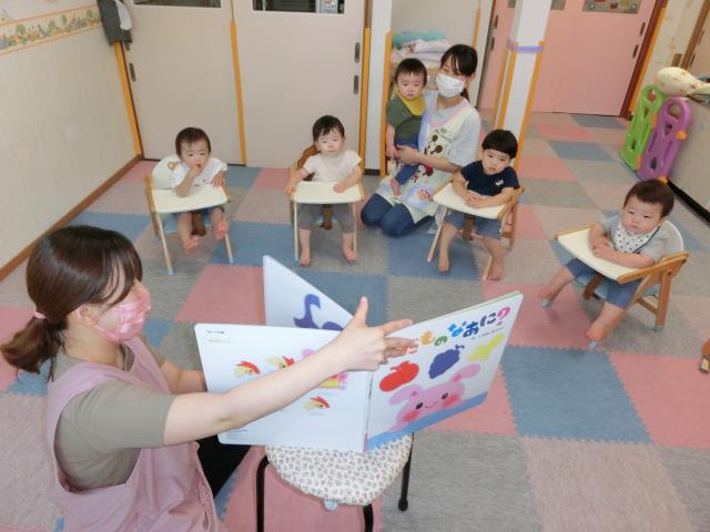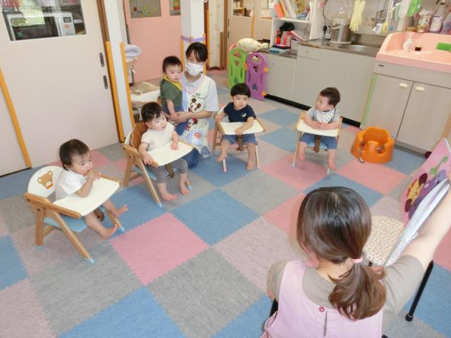 ひよこぐみは、お誕生児が居なかったため大型絵本を見て楽しみました。