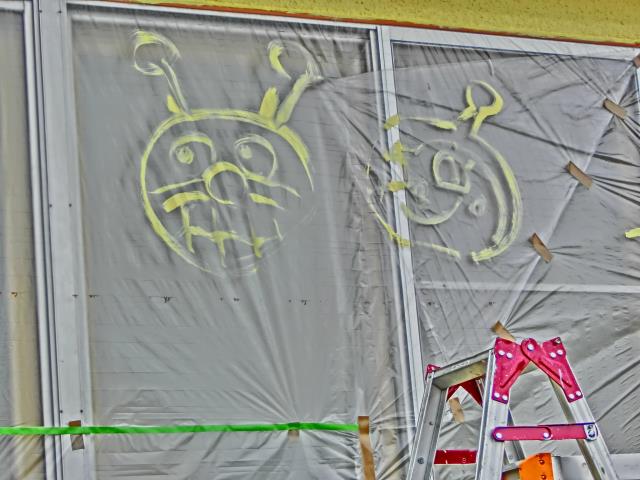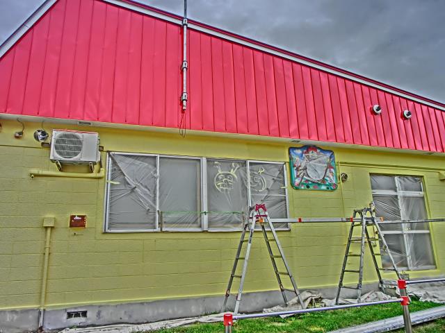 粋な計らいで、ペンキでアンパンマン・バイキンマン・ドキンちゃんを描いでくれていました。