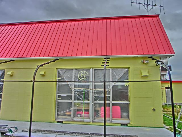 現在、『鐘ヶ江建設』さんに外壁の工事をお願いし、『小田原商店』の職人さんが壁の塗装をして頂いている所です。