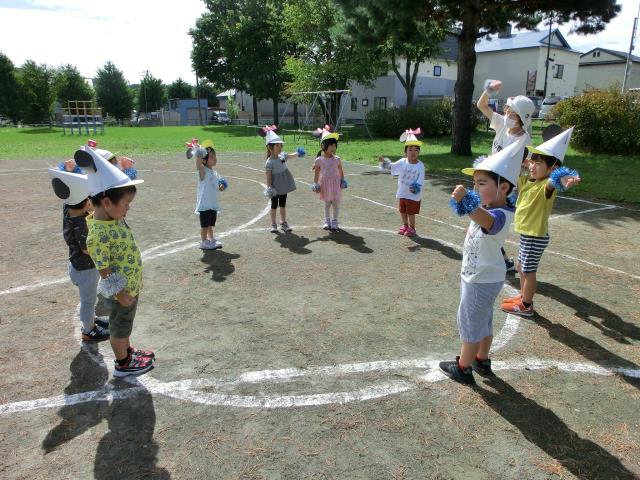 お遊戯はお面をつけて、ミッキー・ミニーになりきって可愛く踊っていましたよ。