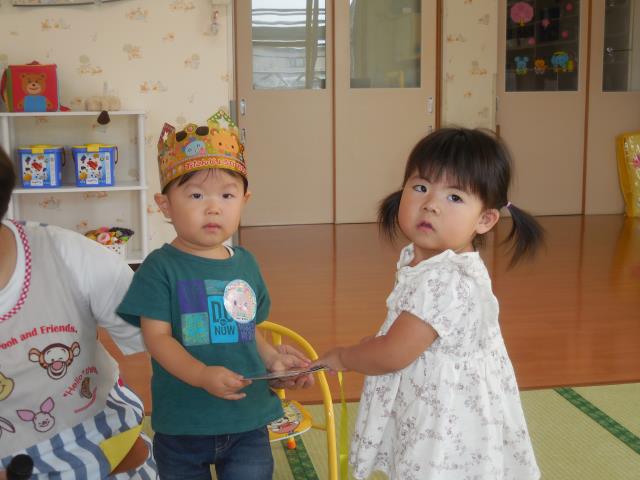 たんぽぽぐみは、8月生まれのお友だち1名と7月にお休みしていたお友だち1名のお祝いをしましたよ!