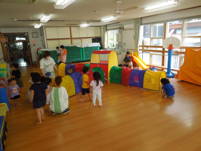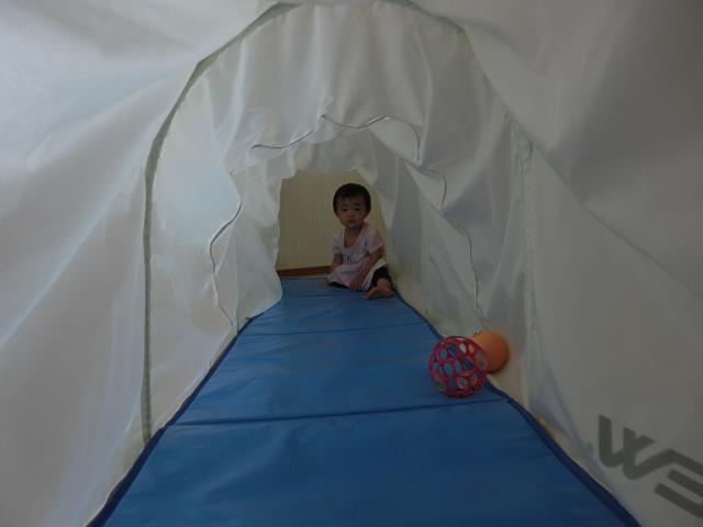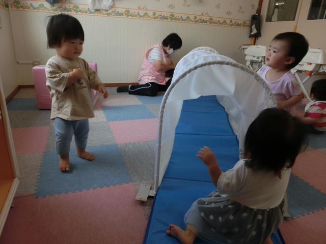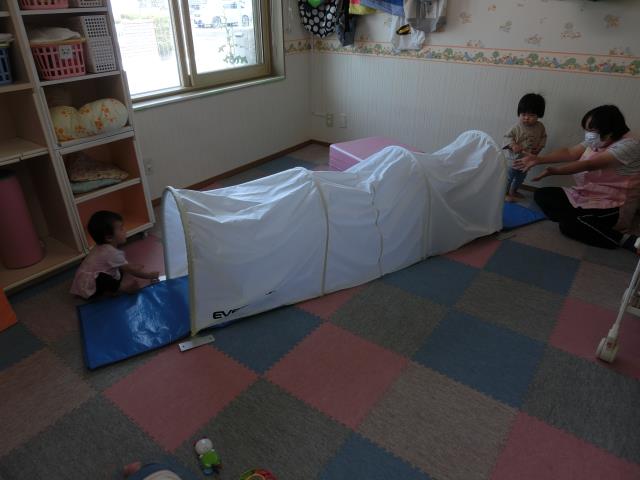 風邪をひいているお友だちは、お部屋でトンネル遊びをしています。
