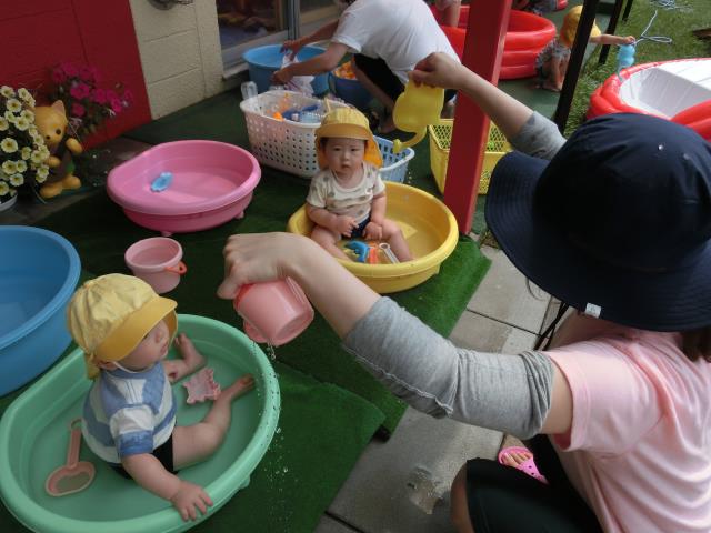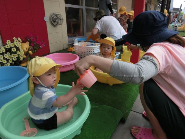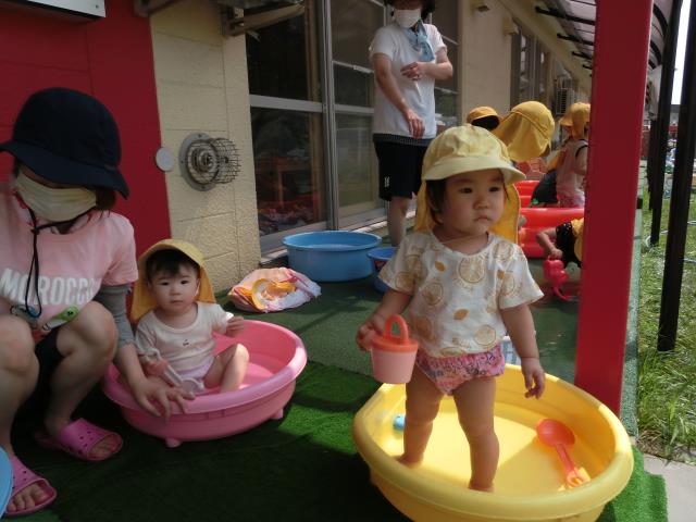 今日のひよこぐみは、温水あそびをしています。