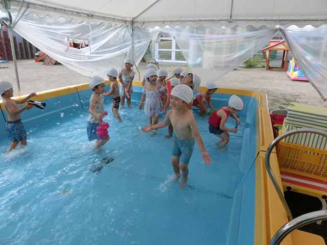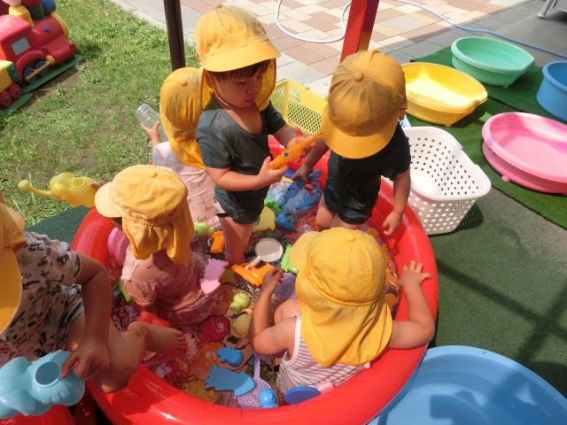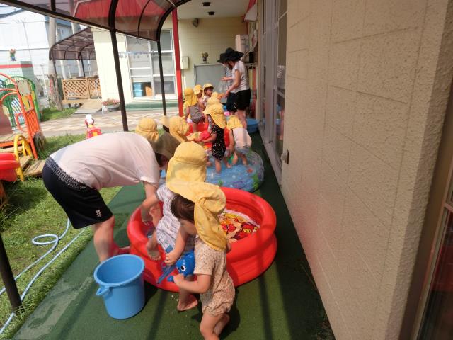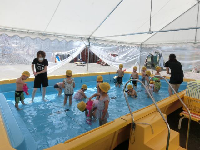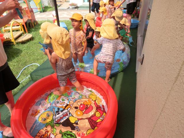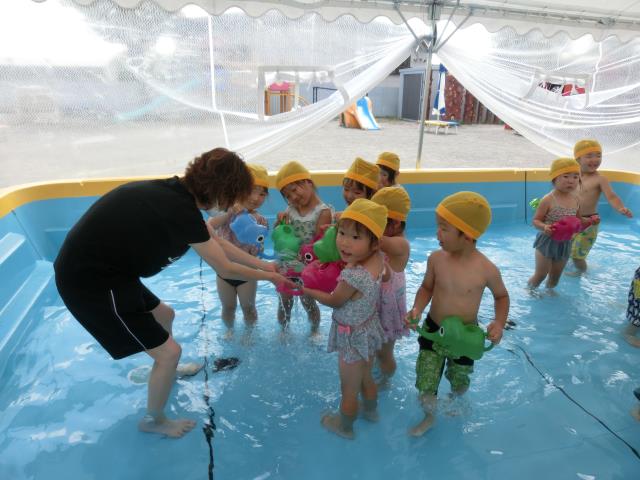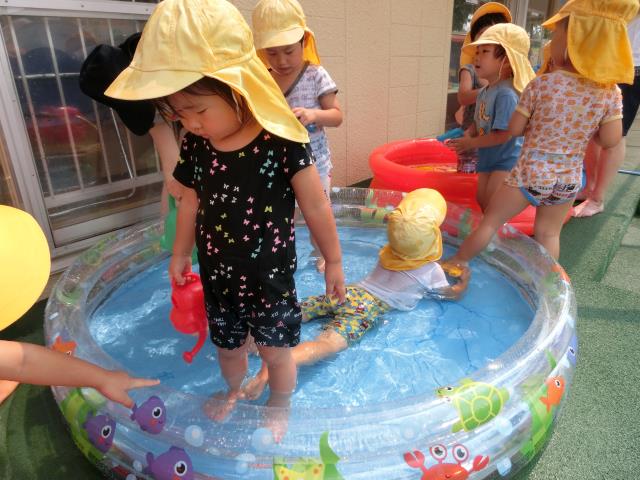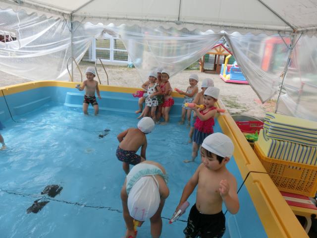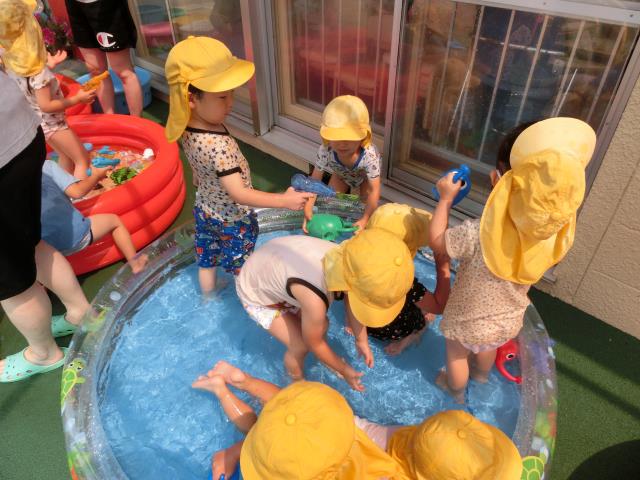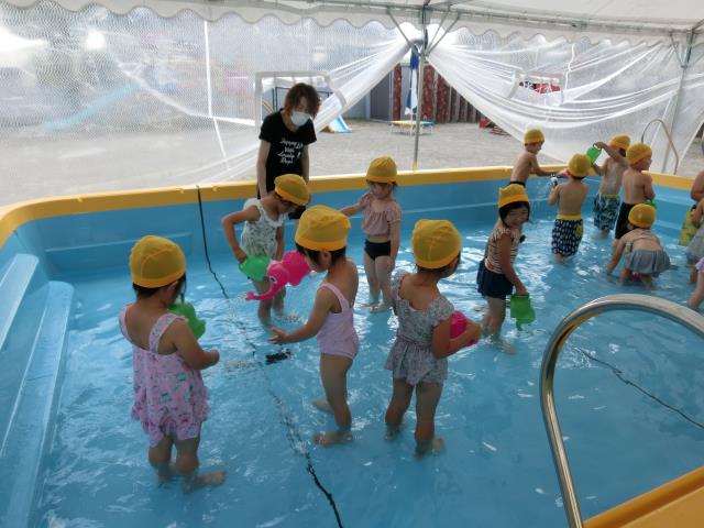 今日もさくら組はプール遊びをしています。