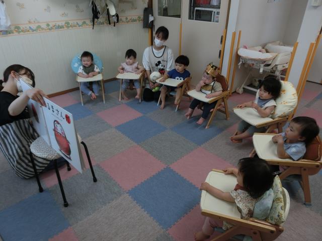 その後は、大型絵本『だるまさんが』を見て楽しみました。