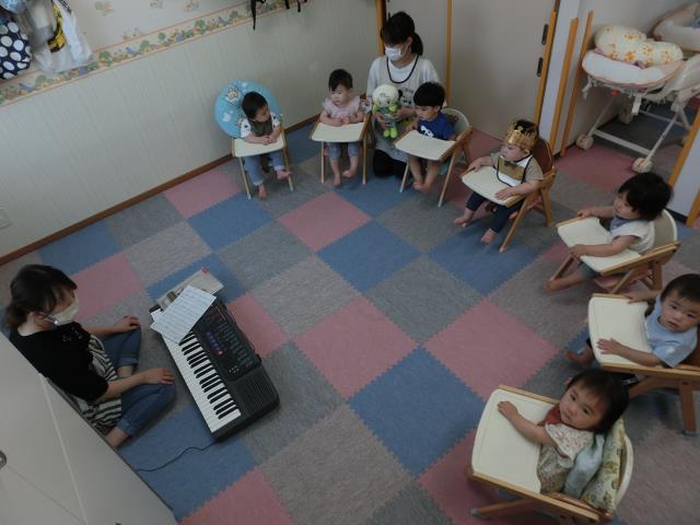 ピアノが鳴り先生が歌うと、楽しそうに体を揺らしたり手を叩いていましたよ。