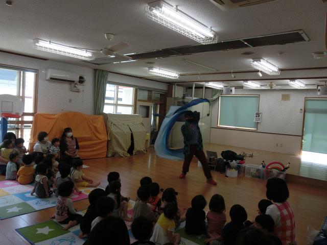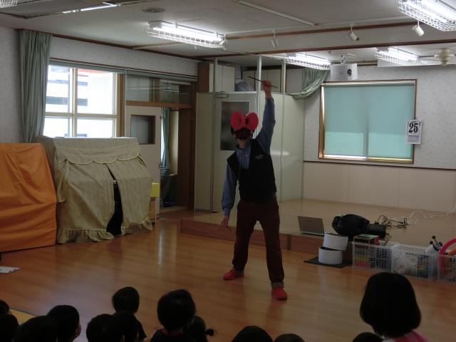 先生の出し物はパネルシアターの「ももたろう」で釘付けとなって見ていましたよ!