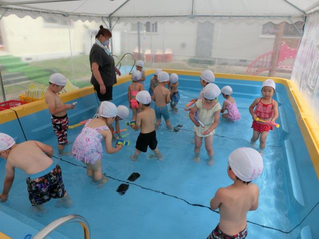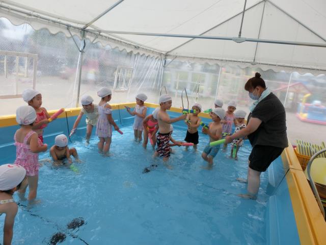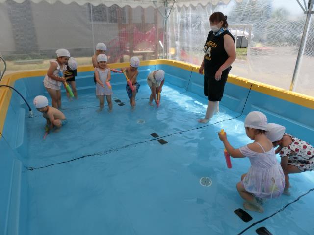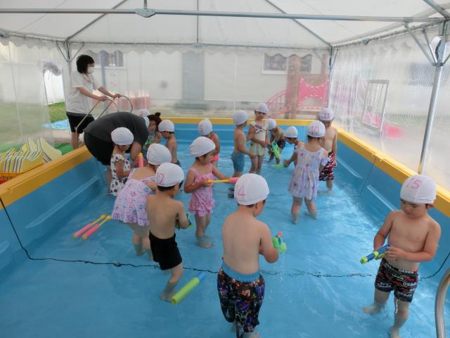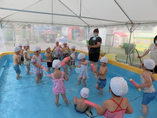 プールでの約束をみんなで守って、水鉄砲であそんで楽しみました!!