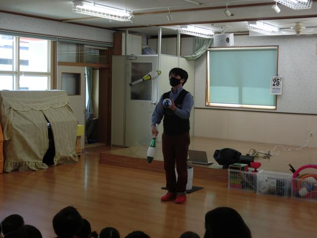 ジャグリングやディアロボ(中国コマ)など沢山の芸を披露してくださり、子ども達は身を乗り出して見ていました。