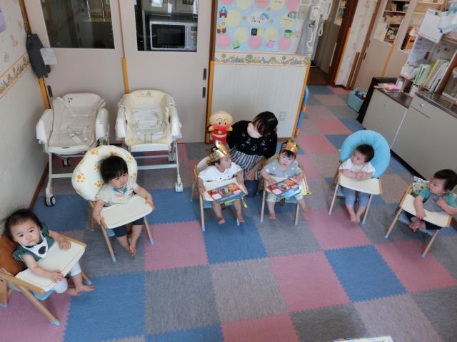つくしぐみは、お誕生のお友だちが2名で、皆で歌をうたったり「おめでとう」と言葉のプレゼントをしました。