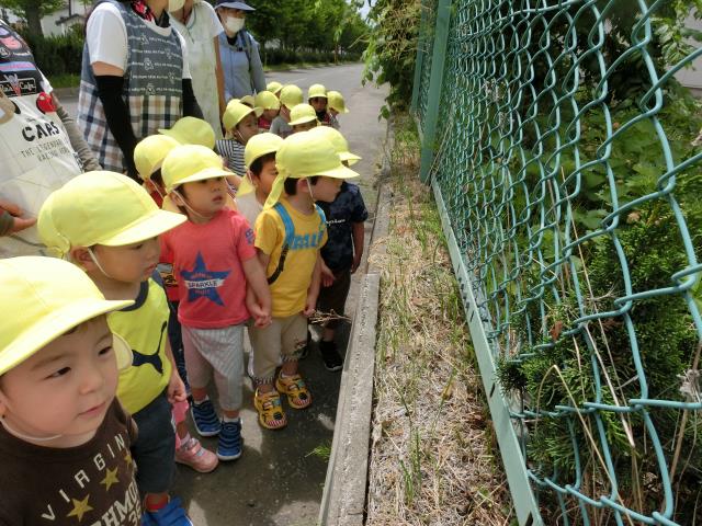 今日のたんぽぽぐみは、水あそびを予定していましたが、気温が上がらなかったため、予定を変更して園周りを散歩してきました!