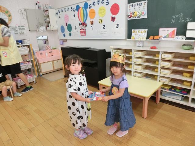 さくらぐみは、6月生まれのお友だち2人のお祝いをしています。