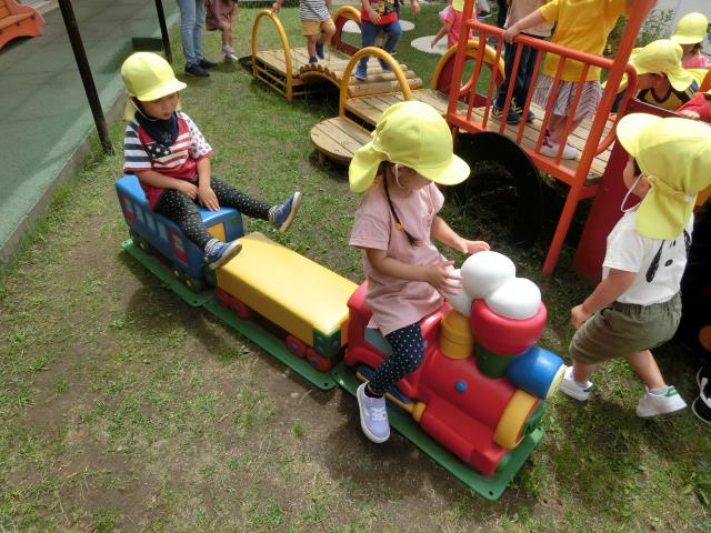 園に帰ってきて、お部屋前の遊具でも遊び、大満足の子ども達です。