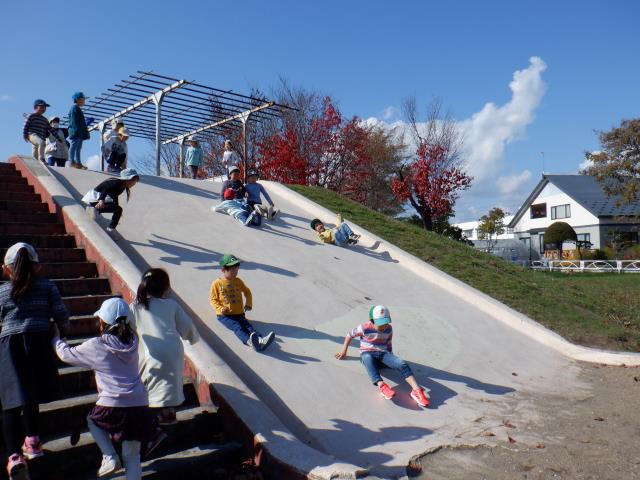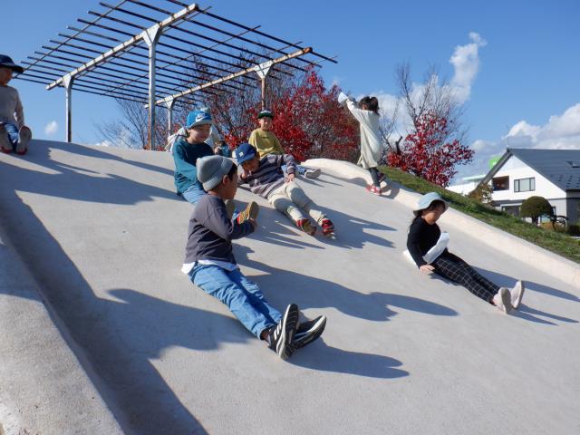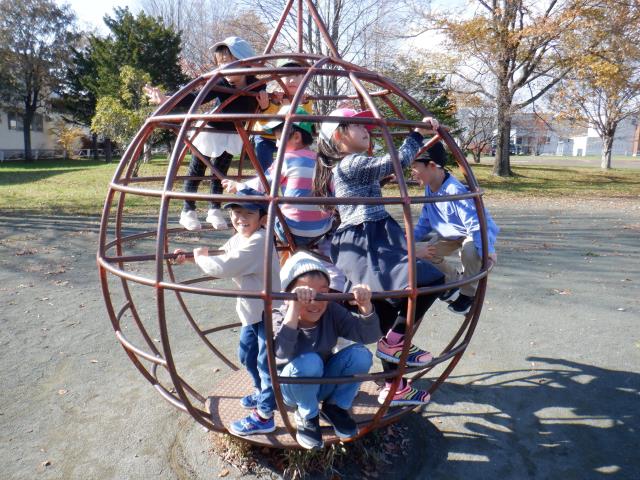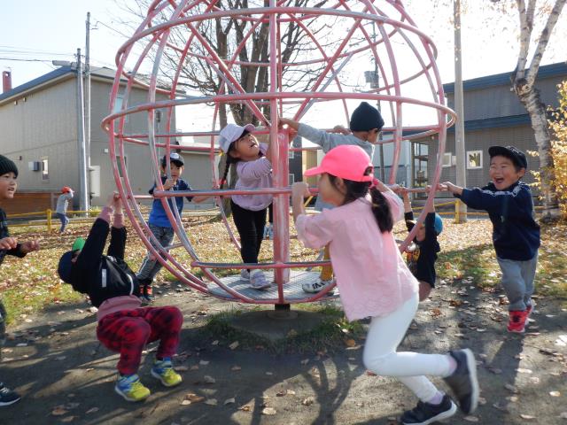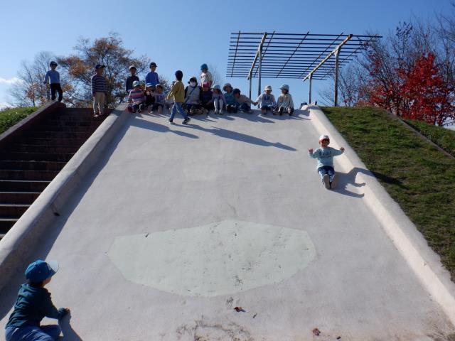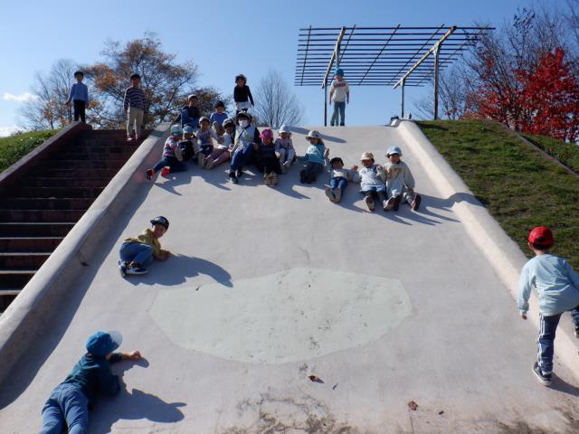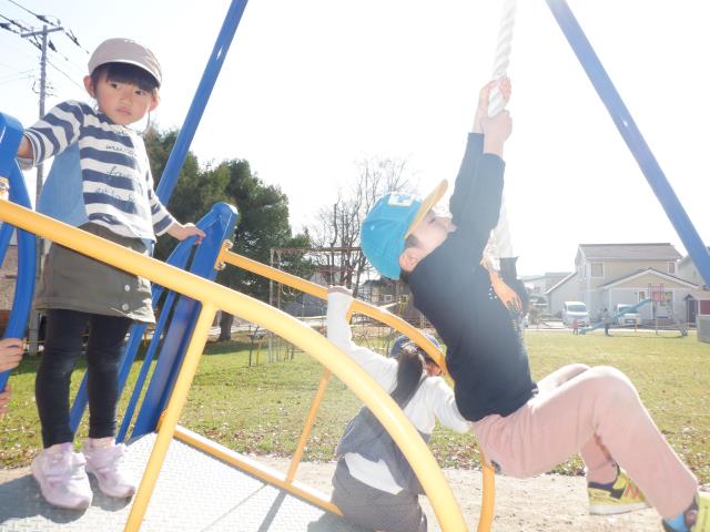 ターザンロープの遊具では、先生が手を貸さなくても自分でできるお友達もみられました!お天気も良く、気持ちの良いお散歩となりました♪