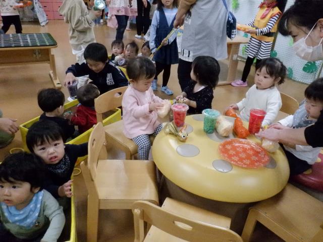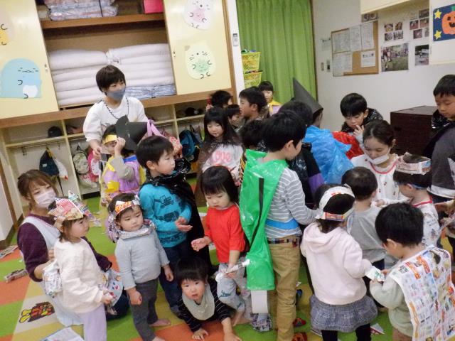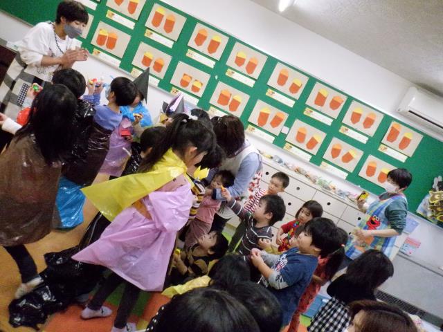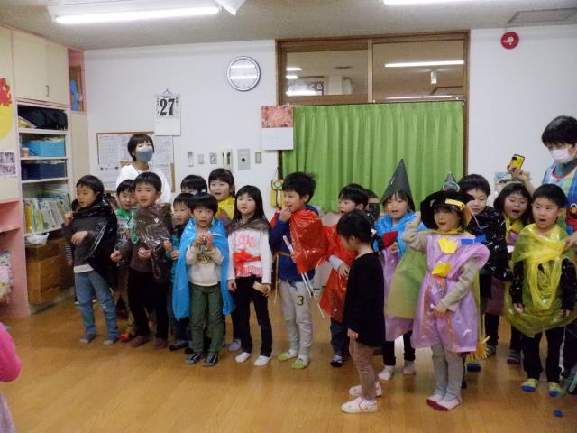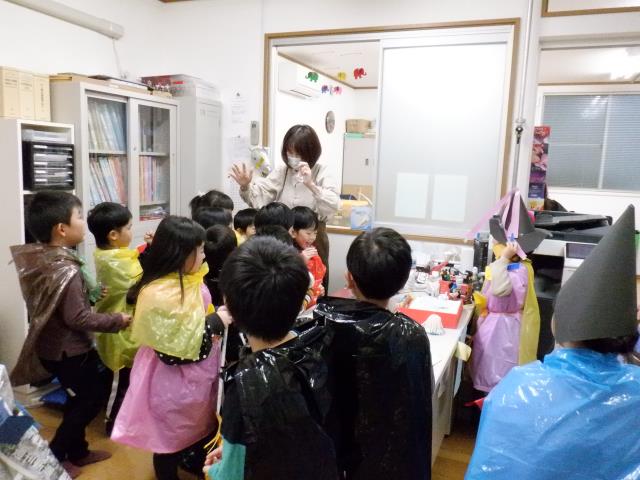 夕方の時間、ハロウィンの仮装をしたゆりさんが各クラスや園長先生のところに登場!