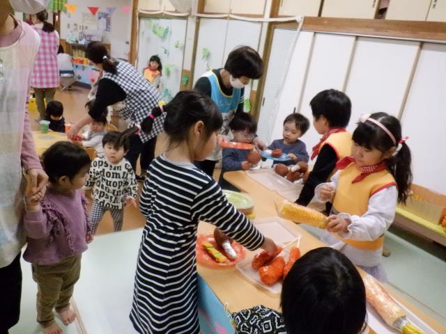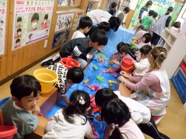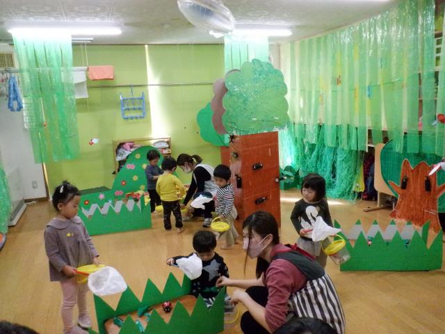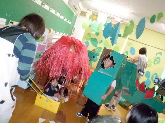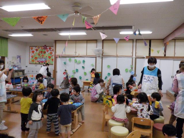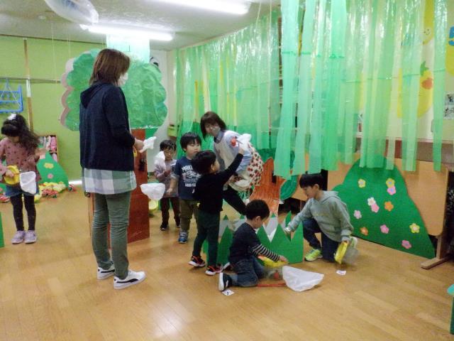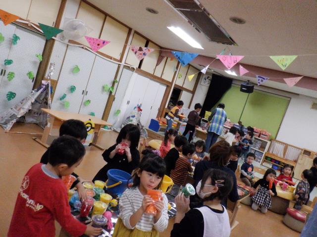 遊びながら異年齢でかかわったり、先生やお友達と一緒にコーナーをまわったりと楽しく過ごし、途中でゆりさんの打ち上げ花火も開催!