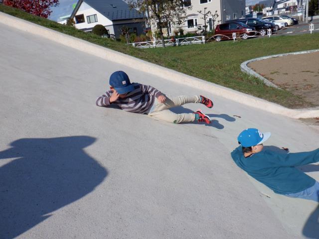 縦や横に一列になって先生やお友達と一緒に滑ったり、スーパーマンなど色んな滑り方を試して楽しんでいました。