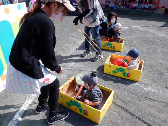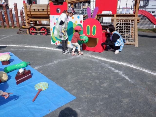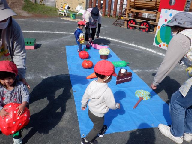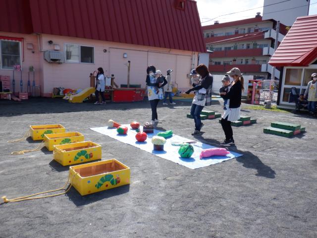 ももさん、はらぺこあおむしの食べ物を選ぶ時に、「これじゃない」「これがいい」という意思表示をするお友達も見られていました。成長ですね!