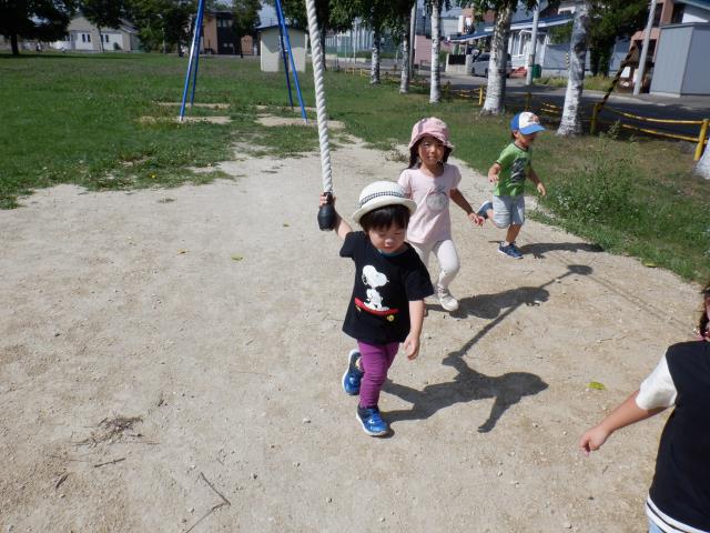 マラソンごっこを頑張った後は、遊歩道で少し遊ぶことができました。