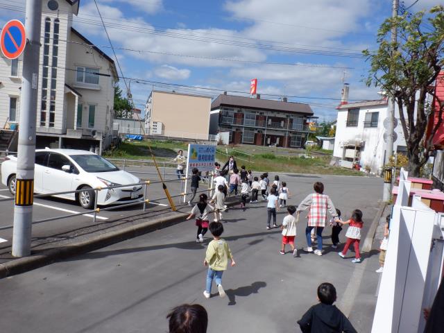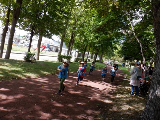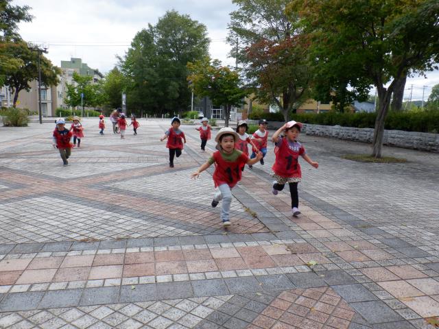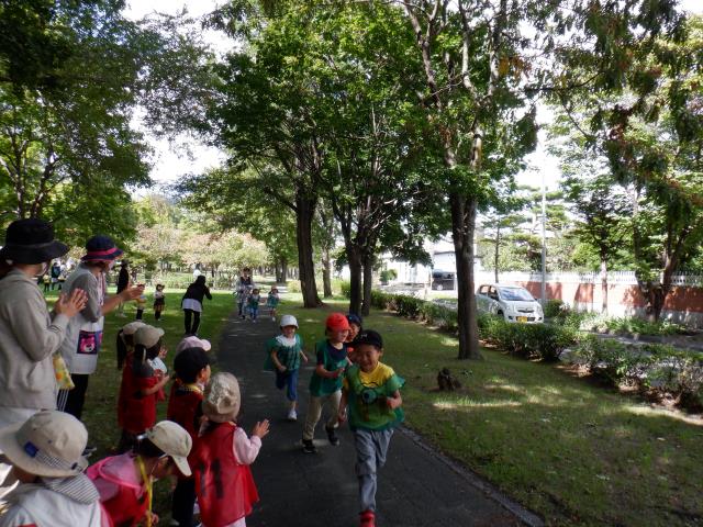 小さいお友達も泣くことなく、大きいお友達も一生懸命走っていました。無事に全員避難できましたよ。