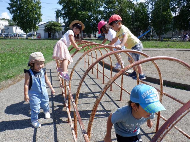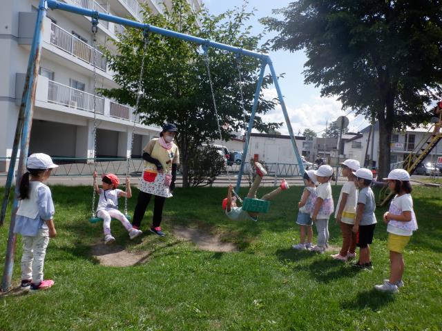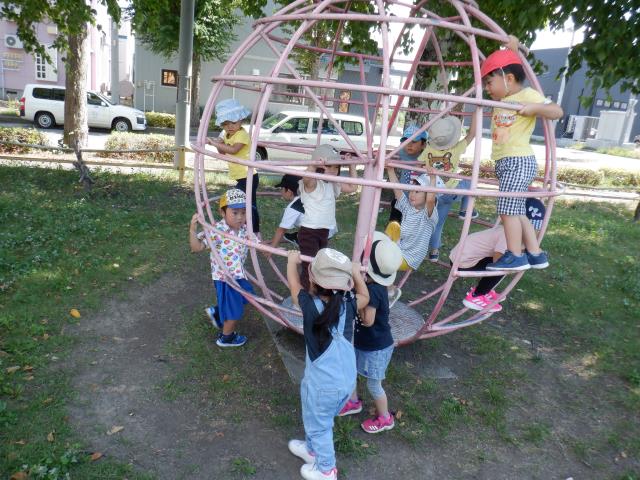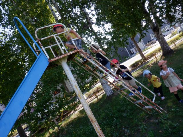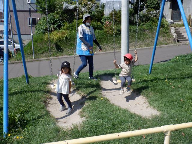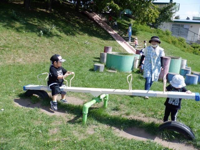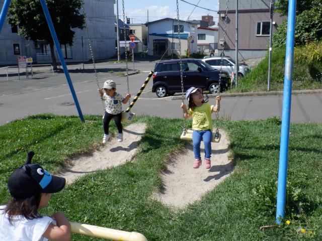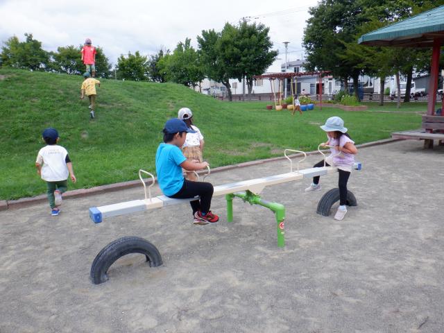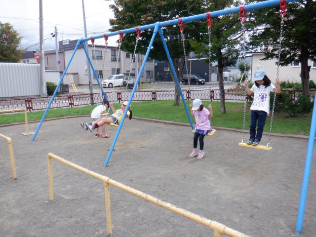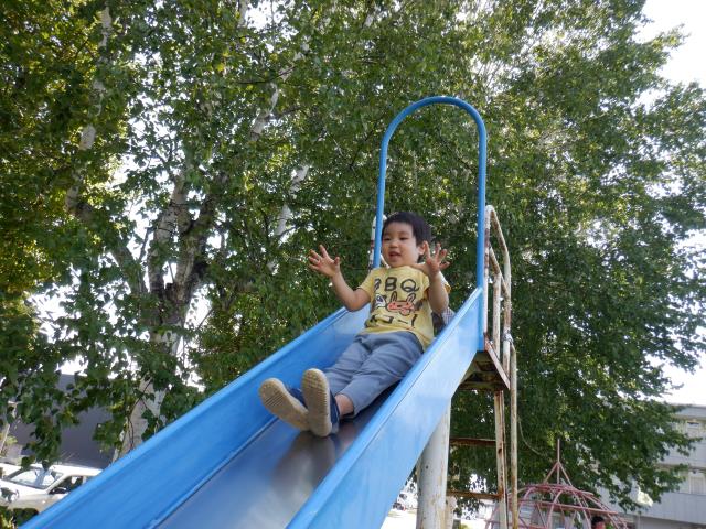 公園では、ブランコやシーソー、すべり台などの遊具でもたっぷり遊んできましたよ。