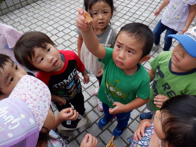 蝶々を捕まえたお友達もいましたよ!自然物や虫にも興味を持っているさくらさんです。