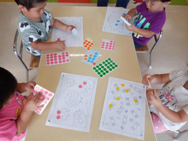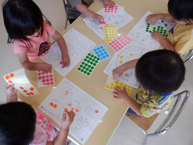 とっても集中して、丸の模様のところにシールを貼っていましたよ!
