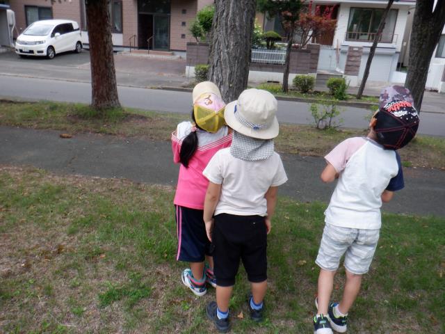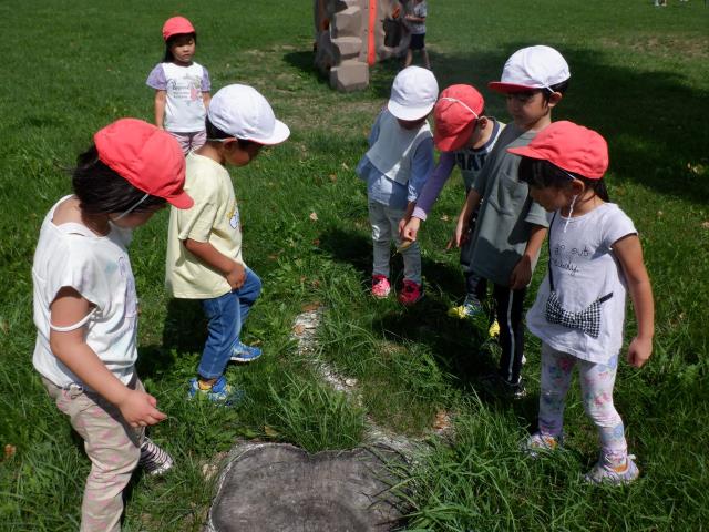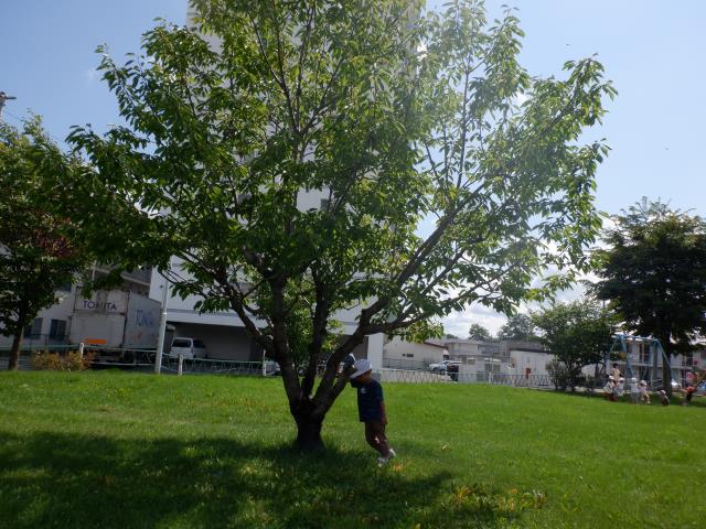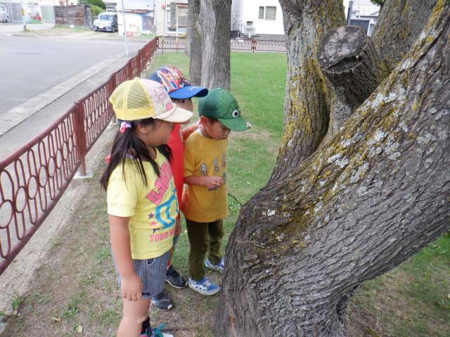 公園内を探検すると樹液を見つけ、カブトムシいるかなぁ~とお友達と話をしてみたり、空っぽの巣箱も見つけました。