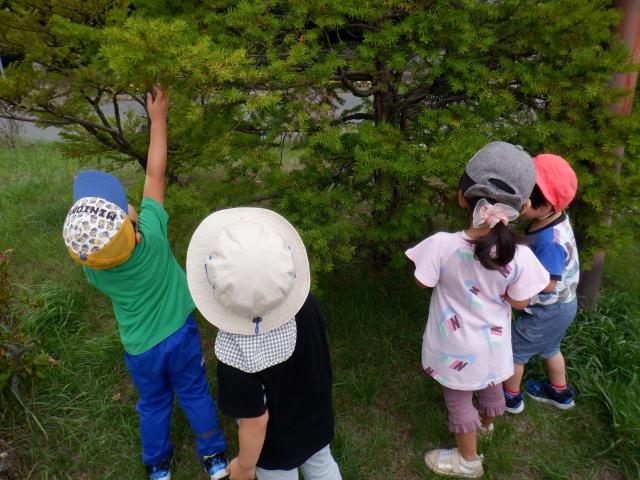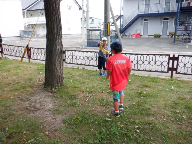樹液を見つけて触ってみたり、カレーライス作り、恐竜のごはん作りと、色々な遊びを楽しんでいました。