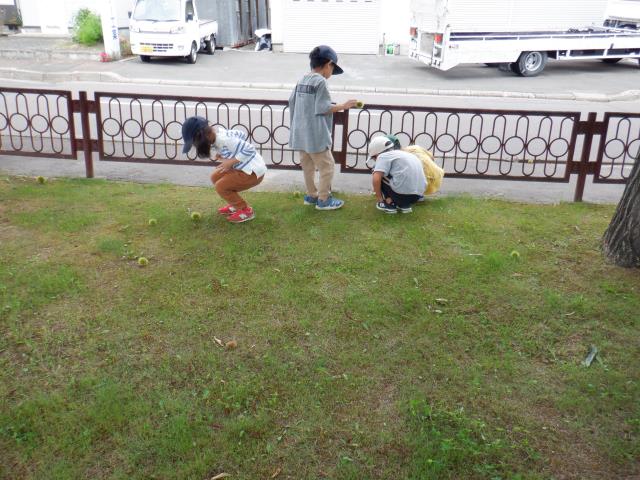 ピアソン公園に行ったたんぽぽさん!栗の木を見上げると…大きな栗発見!下にも栗が落ちていて、園に持って帰ってきてくれました。