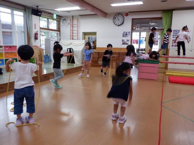 平均台はまだちょっと怖さを感じているお友達もいましたが、縄跳びは少しずつ上達がみられています。