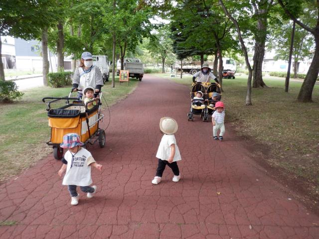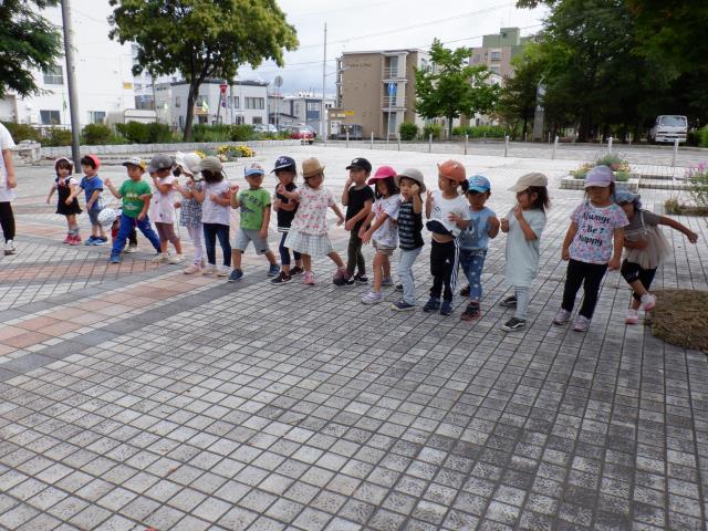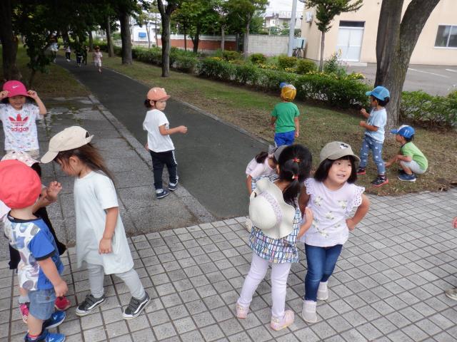 遊歩道でマラソンをしたももさん!よーいピッの合図で月齢の高いお友達は走って先生のところまで行きました。