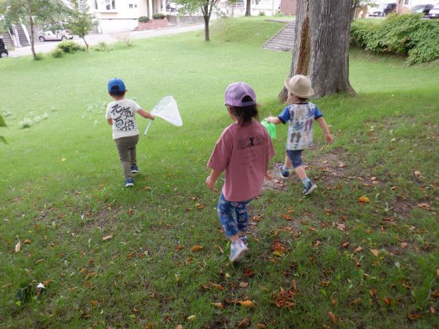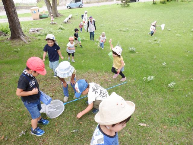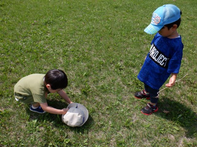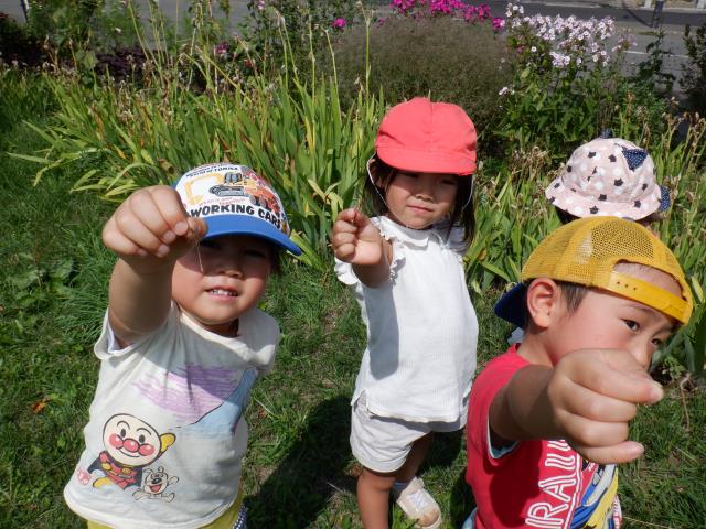 山下公園へお散歩に行ったさくらさん、トンボを追いかけてたくさん捕まえました!蝶々を捕まえたお友達もいましたよ。
