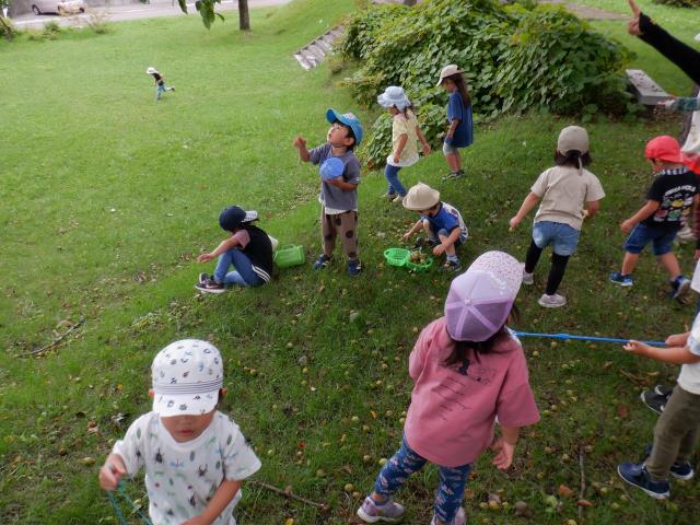 喜んでたくさん拾ったり、栗も発見しましたよ。