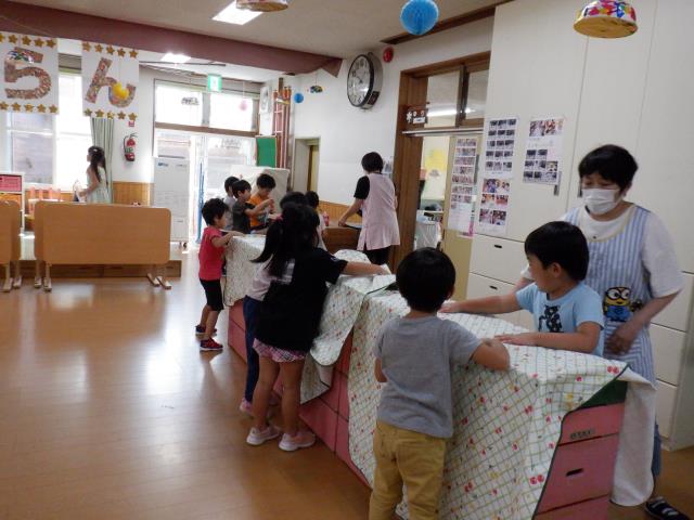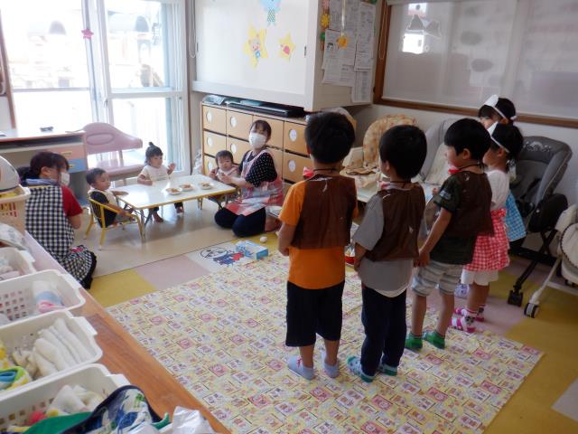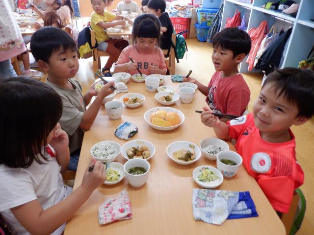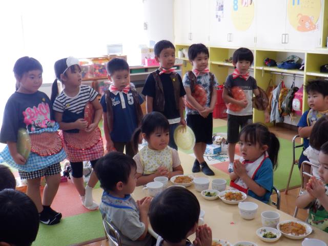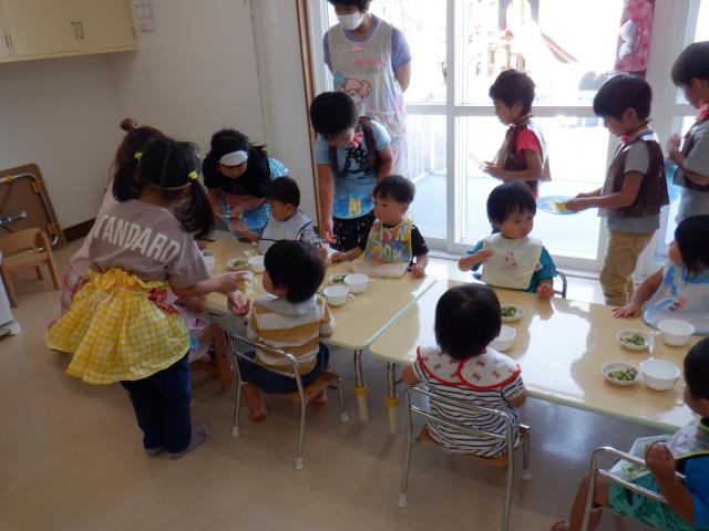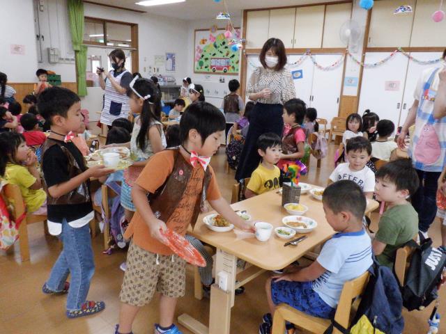 ももさん、ちゅうりっぷさん、たんぽぽさんには、ゆりさんがお部屋に行ってカレーを配りました。小さいお友達も、ゆりさんからカレーを貰う特別感に嬉しそう!いつもよりモリモリ食べていました!