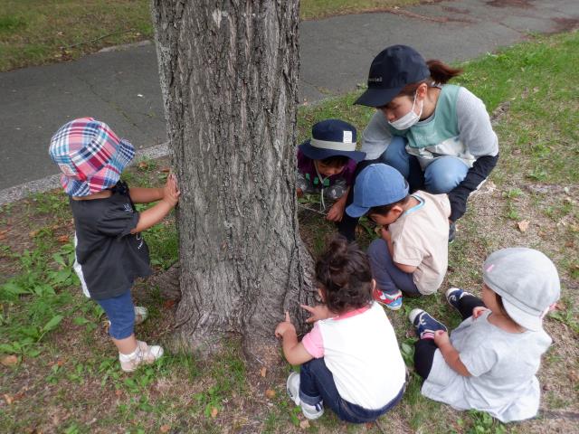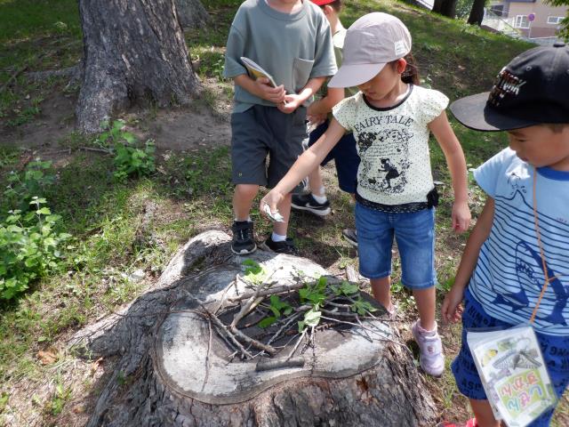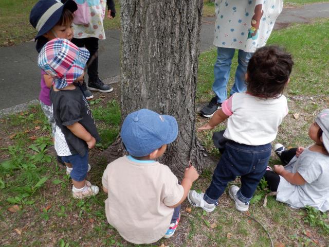 キノコや、木から出ている樹液も発見!色々なことに興味津々なさくらさんでした。