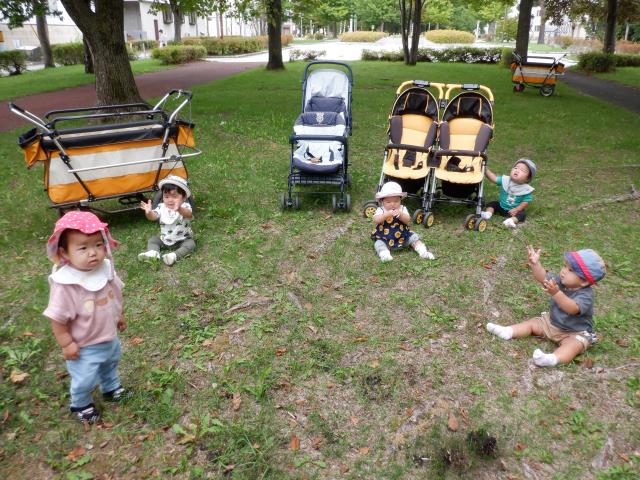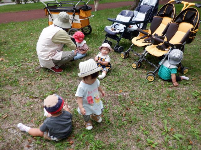 月齢の低いお友達も、座って草を触り、自然にふれて楽しみましたよ。