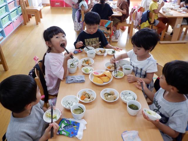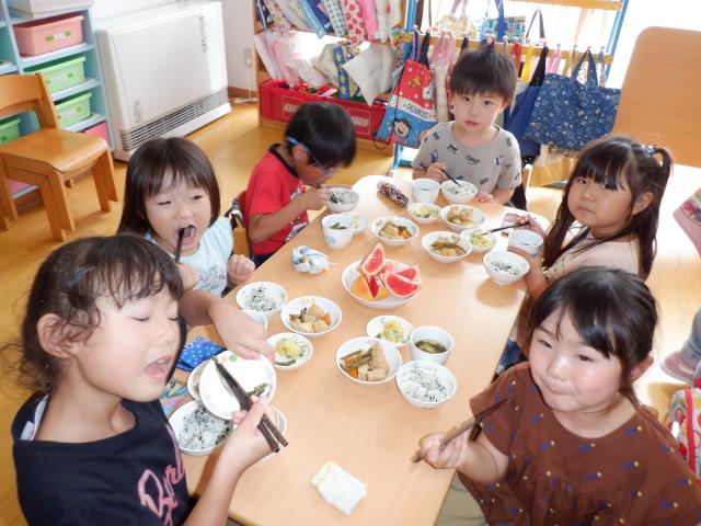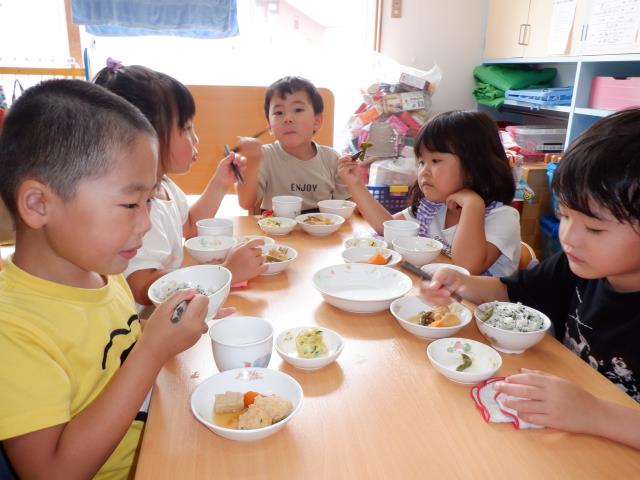 「おいしい!」と食べていたすみれさん。ちょっぴり苦手なお友達も、自分達で育てたピーマンなので頑張って食べていましたよ。お世話して育てた野菜、美味しいね!