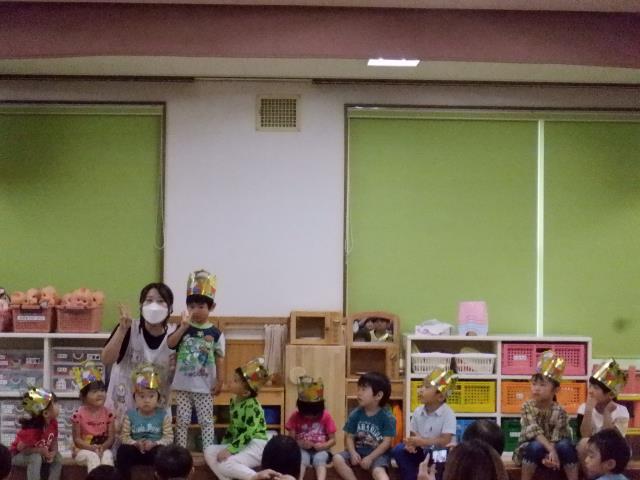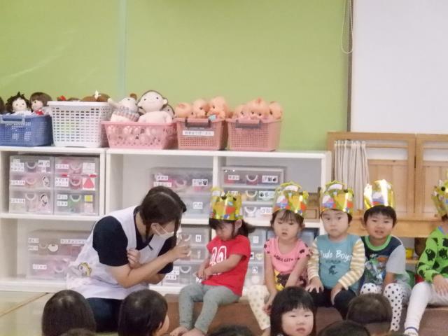 ステージには、10名のお誕生月のお友達がキラキラ冠を被って上がりました。