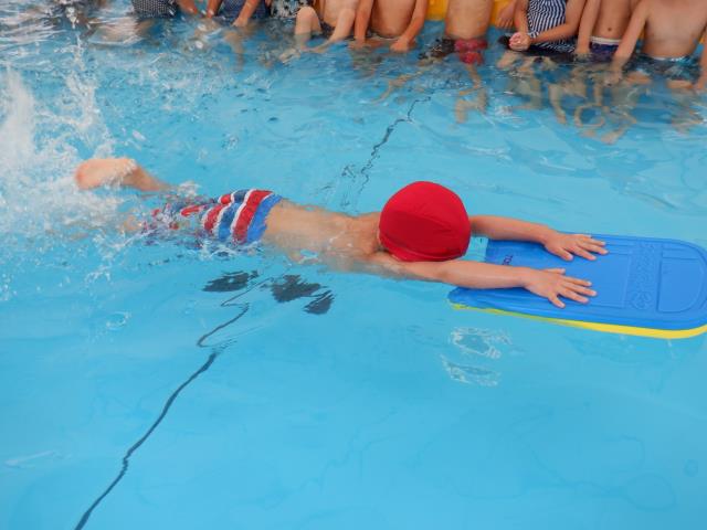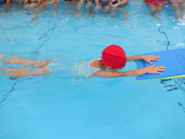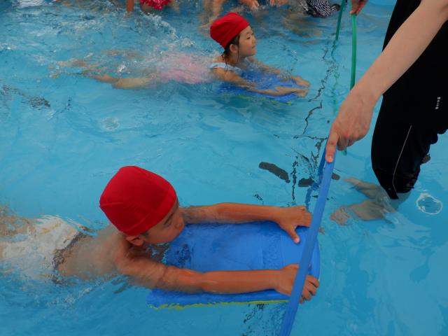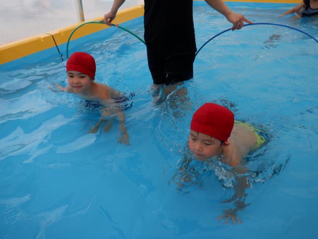 ビート板を使ってバタ足で進んだり、顔をつけて泳げるお友達もいました。初めの頃と違った、成長した姿がみられました。