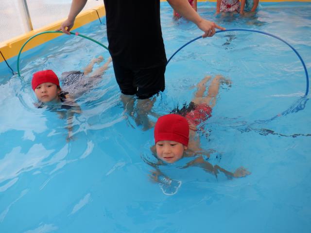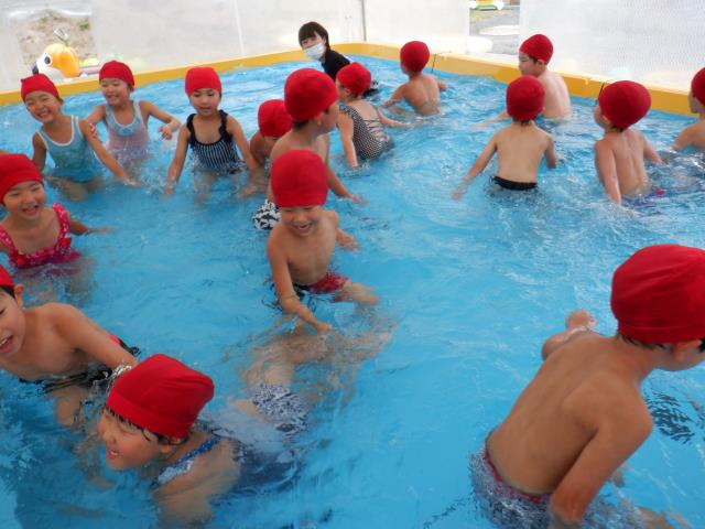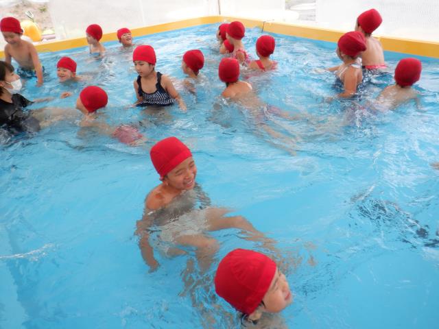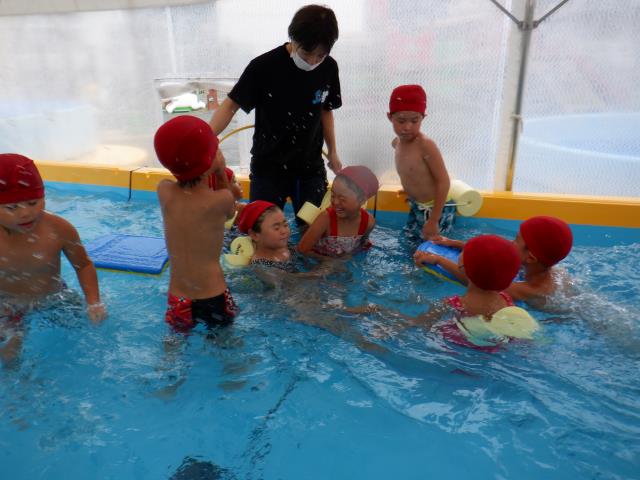 水遊びとは違い、クラス一緒の活動を楽しむことができたプール活動となりました!