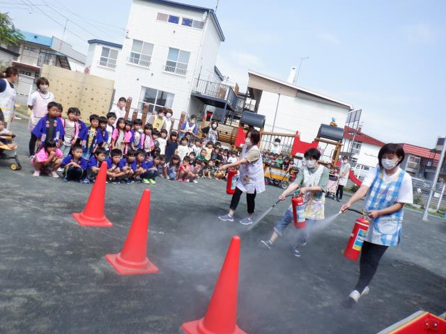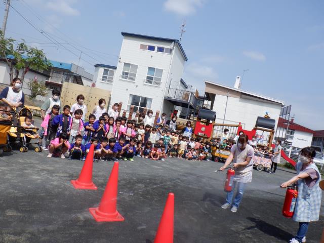 園内にもある消火器の使い方を実際に間近で見て、「すご~い!」と声があがっていましたよ。