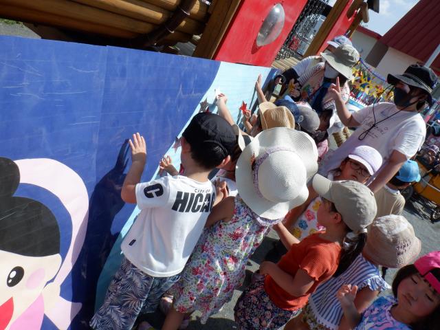 みんなで完成を喜び、お星さまへ願いが届くようにお願いをしましたよ。