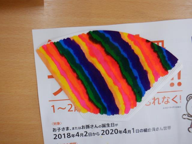 コーヒーフィルターにマーカーで色を塗って…とても真剣なゆりさん。