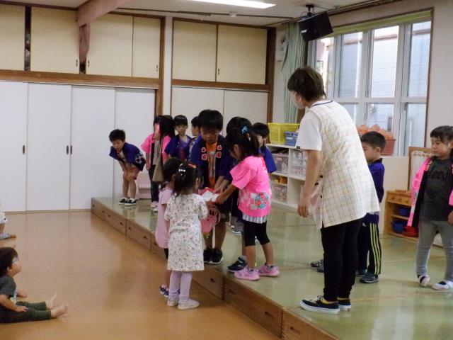 スタンプカードを渡してもらい、お祭りごっこに期待が高まります。明日はみんなで楽しもうね!!