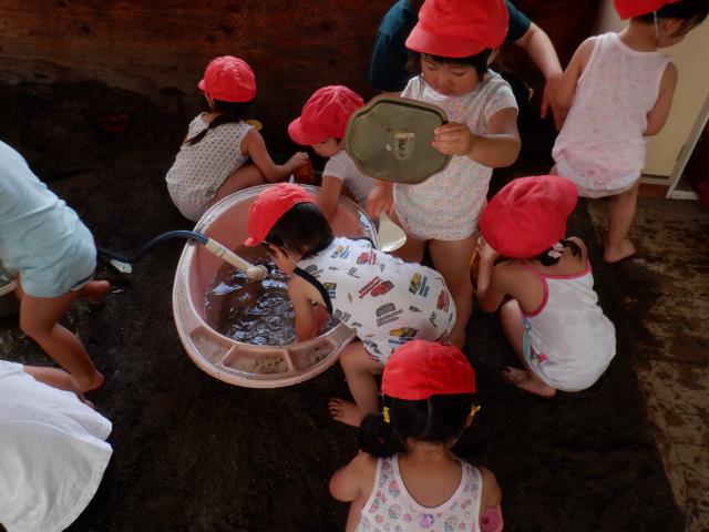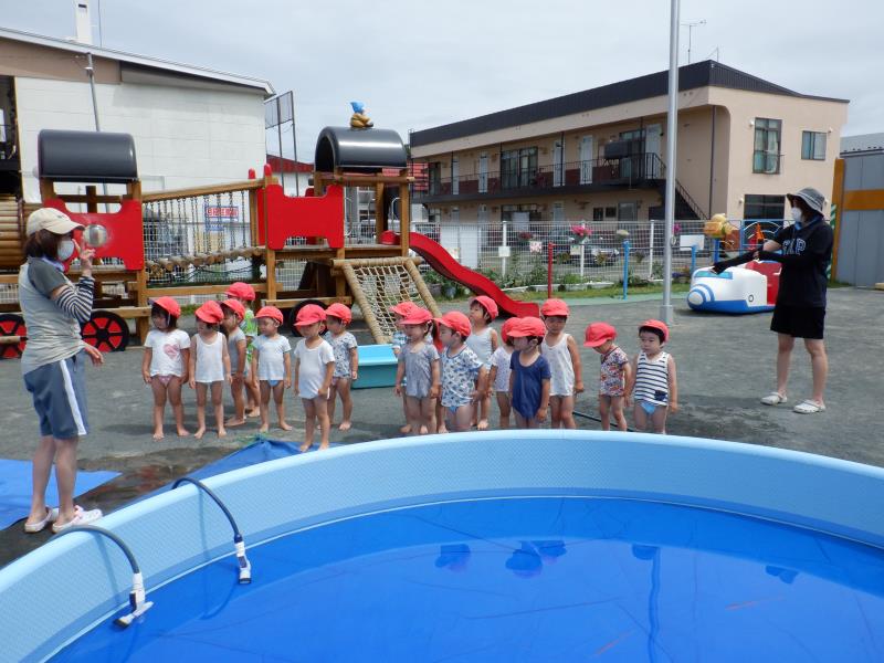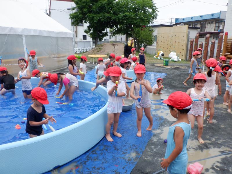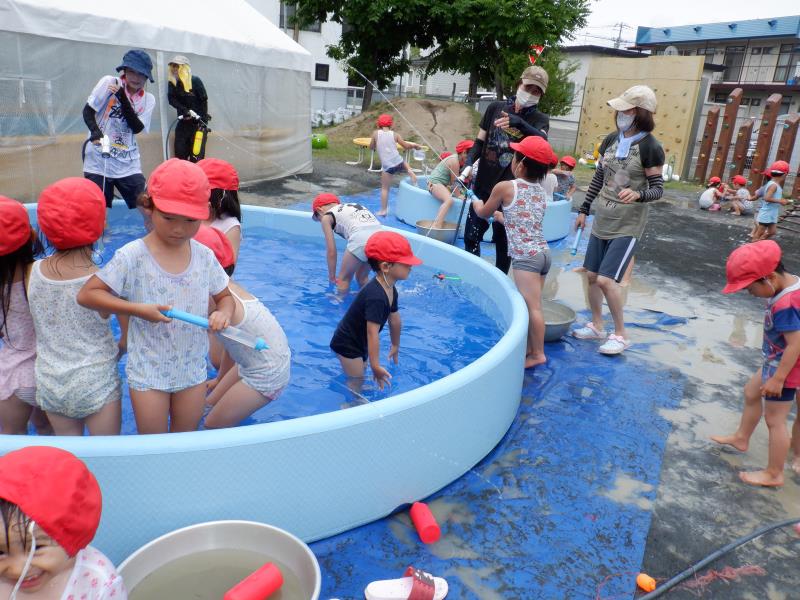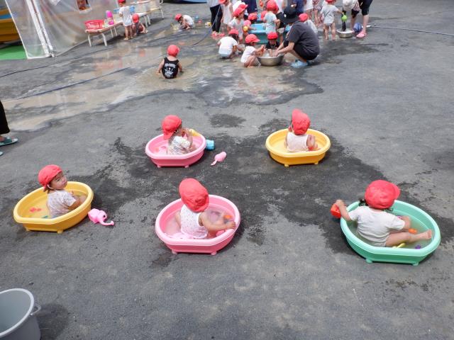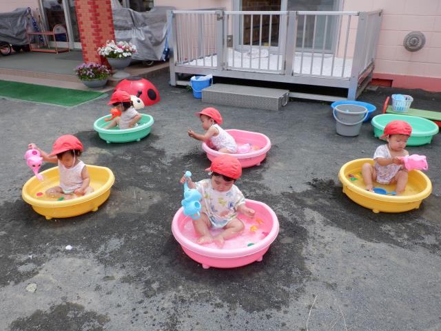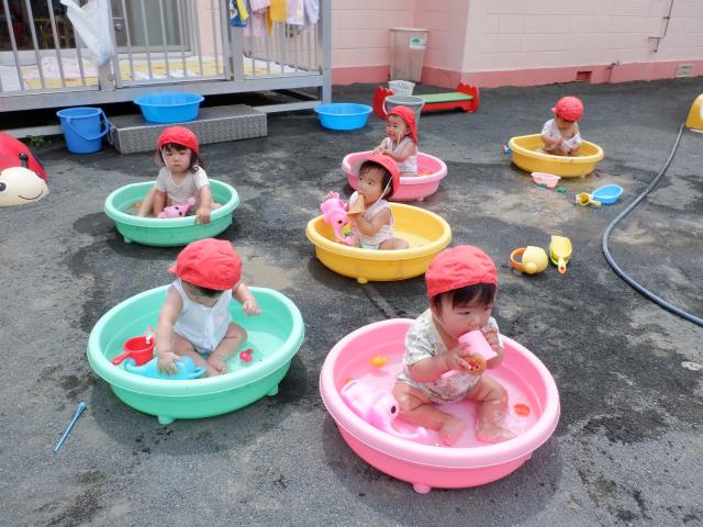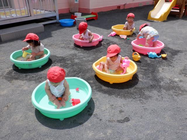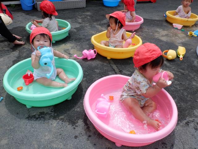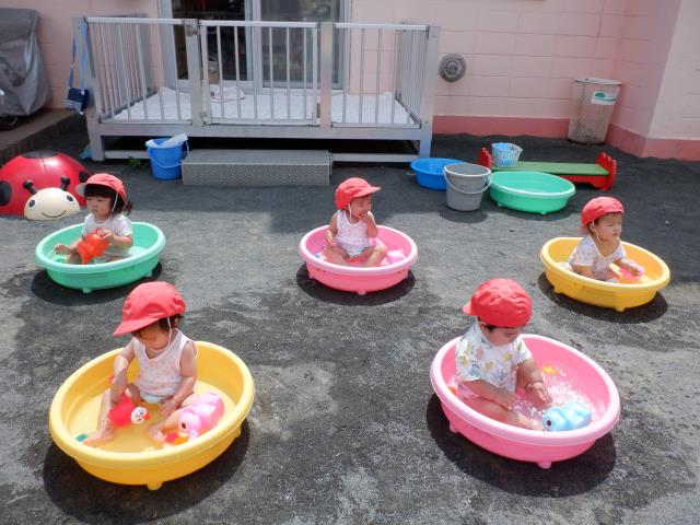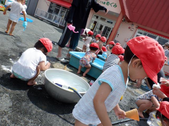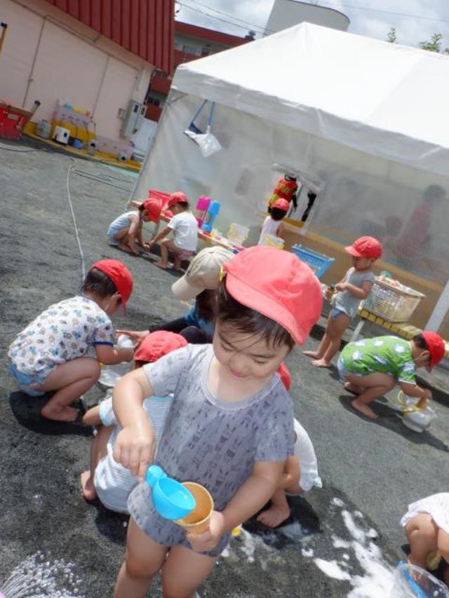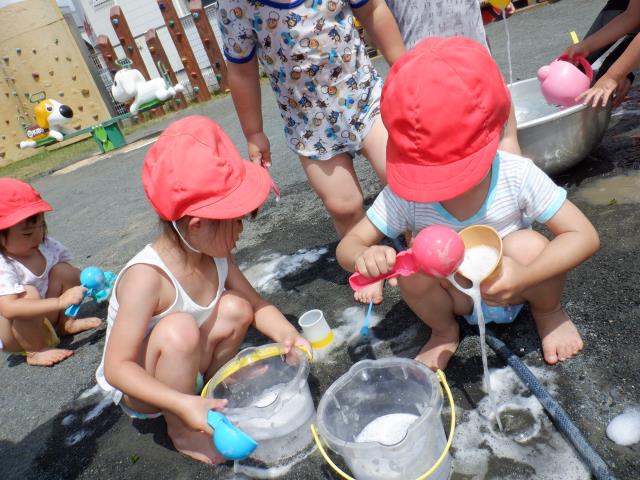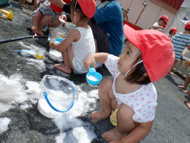 たんぽぽさんはしゃぼん玉をしたり、水を泡ぶくにして遊んでいました!冷たい水、泡のやわらかさと、色々な感触を味わいながら、今日も元気に過ごしたたんぽぽさんでしたよ♪