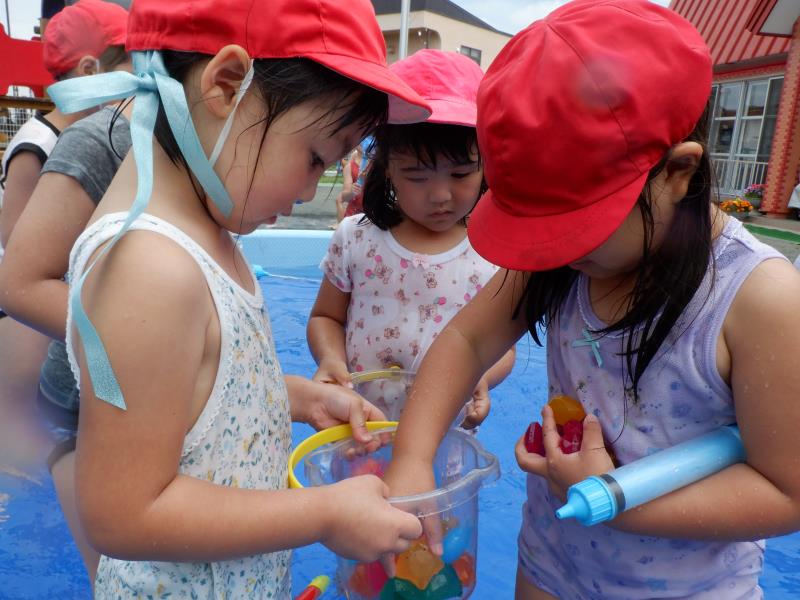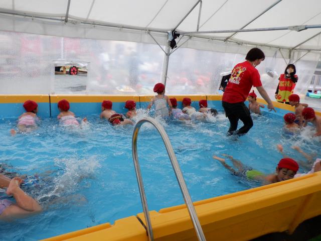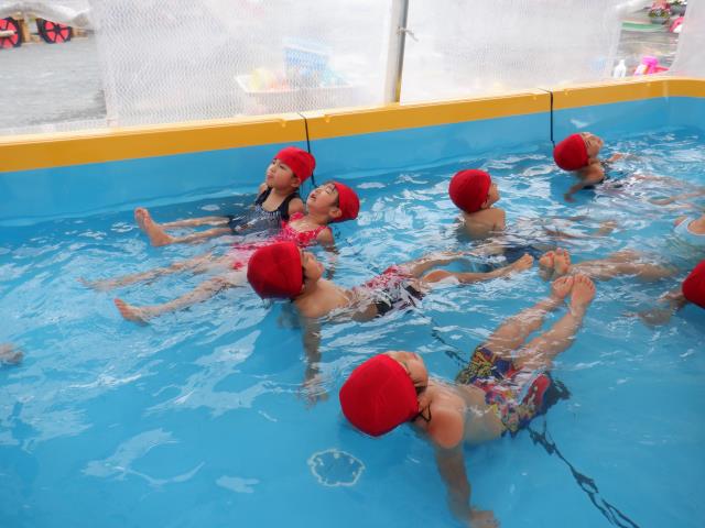水遊びと違って、プールでしかできない遊びを楽しんでいるすみれさん。